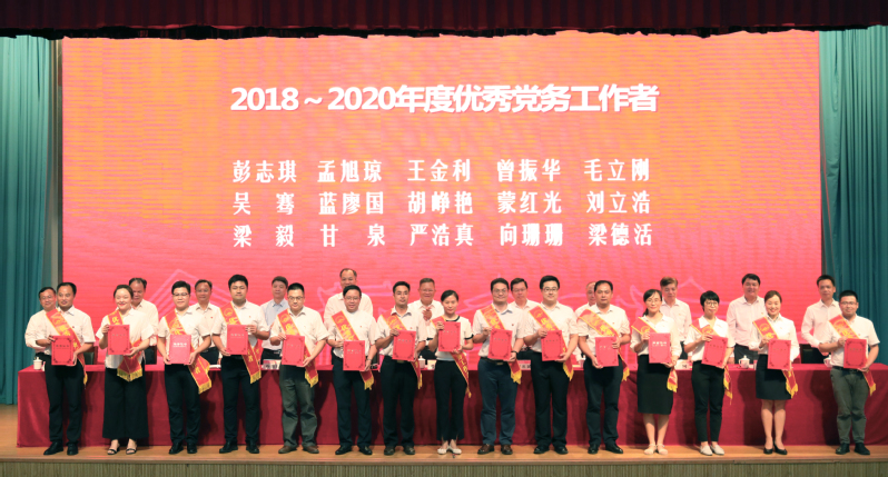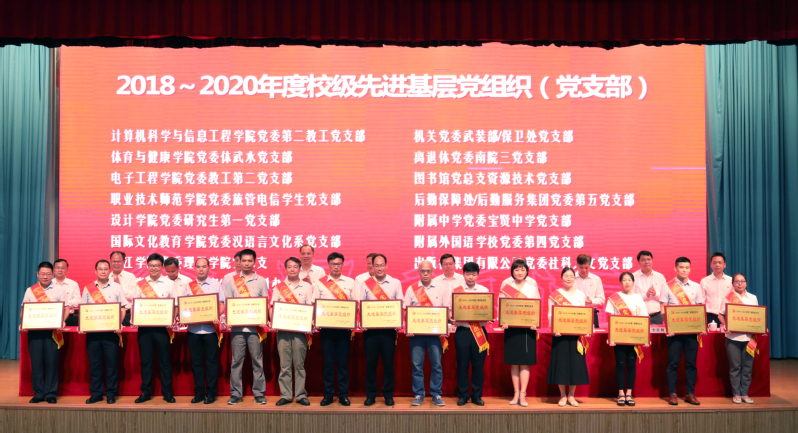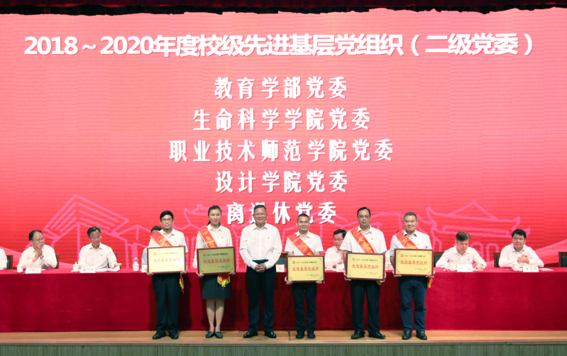 会上,校党委副书记旷永青宣读了获得2018~2020年度校级先进基层党组织、优秀共产党员、优秀党务工作者、优秀党支部书记的先进集体和先进个人名单。邓军为获得表彰的先进基层党组织(二级党委)颁奖;在主席台就坐的校领导、校党委常委共同为受表彰的先进集体和个人颁奖。