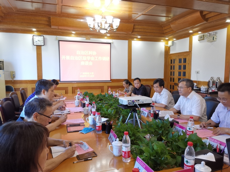 7月16日,自治区科协党组书记、副主席纳翔、自治区科协副主席梁宏与桂林市科协主席俸文英等一行7人到我校开展自治区级学会工作调研座谈,我校副校长、校科协主席苏桂发、科技处相关负责人以及依托我校的广西动物学会、广西心理学会,和依托中国有色桂林矿产地质研究院有限公司的广西有色金属学会相关负责人参加了座谈会。