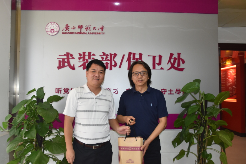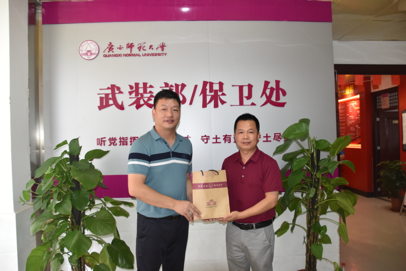 邓军对伏虎一行的到来表示热烈欢迎,对广西艺术学院多年来给予我校的关心与支持表示衷心感谢。邓军说,广西艺术学院办学定位精准,安全保卫和疫情防控成绩突出,在武装、保卫等多方面积累了成功经验,非常值得广西师范大学学习借鉴。在谈到如何做好学校安全稳定工作时,邓军表示,学校党委、行政领导班子和校领导要高度重视,各项安全工作要抓紧抓好,各级领导要主动推进安全工作,解决实际问题;要建设一支战斗力强,作风过硬的武装保卫队伍,在疫情防控、防汛抗洪、应急处置等重大事件时冲在第一线;要凝聚出安全稳定工作良好氛围;面对各项复杂、艰难任务,勇于担当,不谋私利,有为才有位。邓军希望双方以此次交流访问为契机,在今后进一步深化交流与合作,携手实现共同发展。