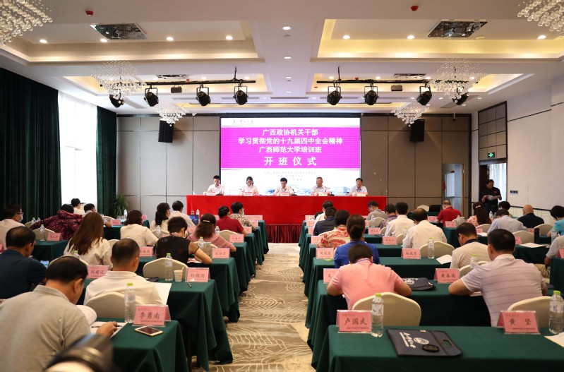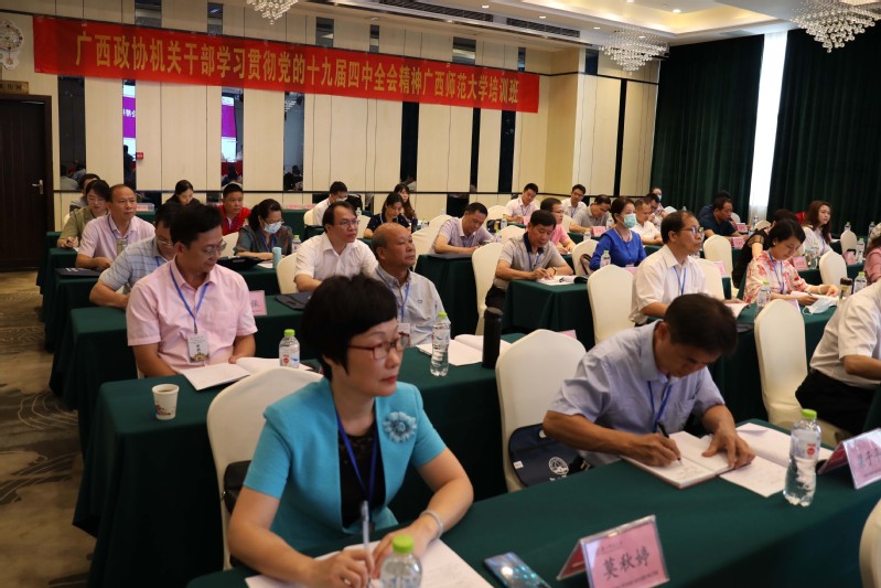 2020年广西政协机关干部学习贯彻党的十九届四中全会精神广西师范大学培训班由政协广西壮族自治区委员会办公厅主办,广西师范大学承办。据悉,本次培训时长为5日,课程紧紧围绕学习贯彻党的十九届四中全会精神,感受中国制度的优越、打造忠诚干净担当的高素质的干部队伍、提高人民政协治理效能等内容展开,贴合主题,联系实际,符合政协机关干部的所思、所需、所盼。