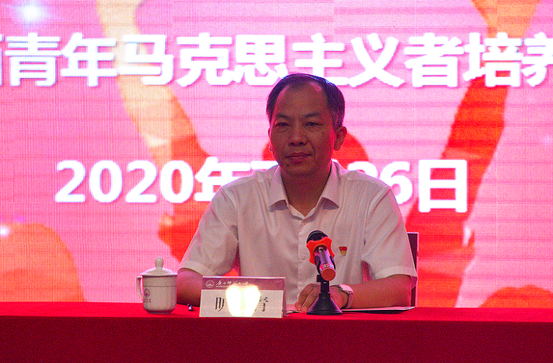 7月26日上午,2020年广西青年马克思主义者培养工程高校班开班仪式在我校育才校区田家炳教育书院报告厅举行,共青团广西区委副书记左向蕾、校党委副书记旷永青和共青团广西区委学校部副部长周岚出席。开班仪式由校团委主要负责人主持。