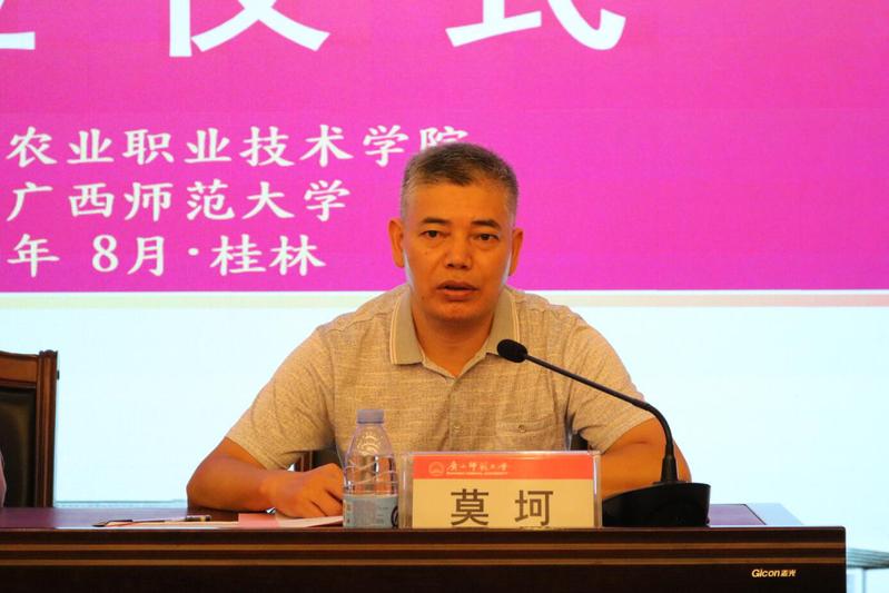 开班仪式上,黄文韬代表广西师范大学对广西农业职业技术学院党委书记杨昌鹏、院长高崇敏带队前来参训的90名学员表示诚挚的欢迎,对广西师范大学的办学历史、学科优势和干部教育培训工作进行介绍,并预祝培训取得圆满成功。杨昌鹏作开班动员讲话,对学员学习态度、学习纪律做出明确要求,并给予殷切希望。