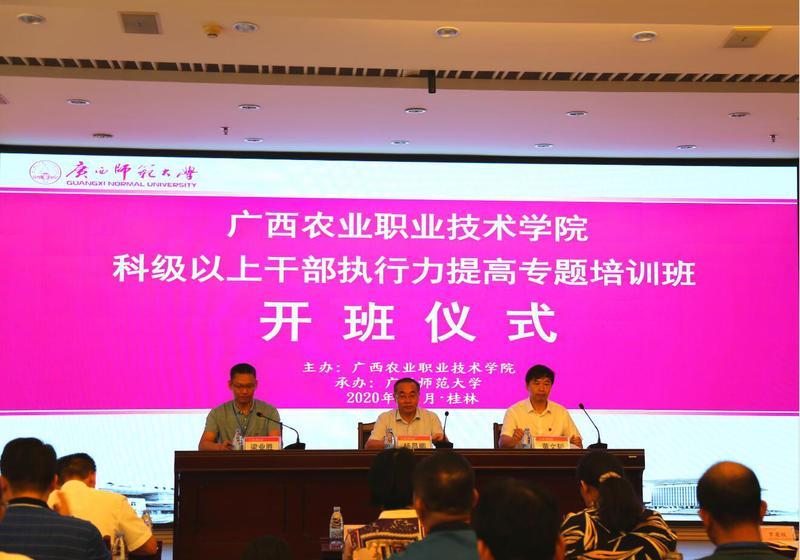 为深入学习贯彻党的十九届四中全会精神,进一步加强高校干部队伍建设,提升干部执行力,8月4日至8日,广西农业职业技术学院科级以上干部执行力提高专题培训班在桂林顺利举办,重温红色历史,传承革命精神,提升能力素质,打造过硬队伍。本次培训共有90名学员,其中校领导7名。