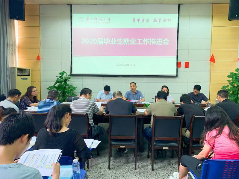 为确保实现2020届毕业生“稳就业”“保就业”工作目标,8月18日,我校在育才校区就业指导中心召开2020届毕业生就业工作推进会议,对做好最后冲刺期的毕业生就业工作进行再动员、再部署、再强化、再推进。校党委副书记旷永青主持会议并讲话,学工部(处)、研工部相关负责人、大学生就业指导中心全体工作人员以及部分学院(部)党委书记、院长、党委副书记和毕业班辅导员参加本次会议。