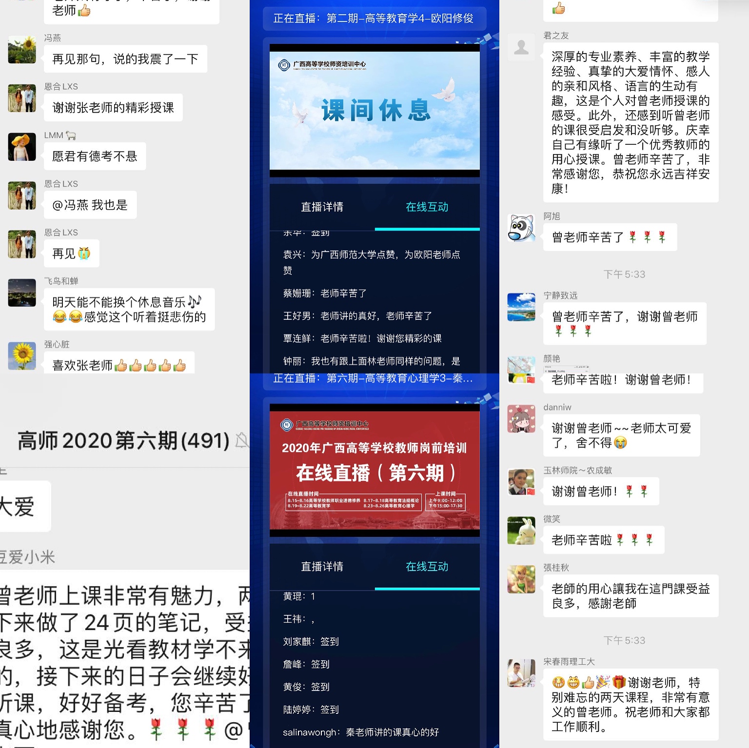 7月26日至8月26日,由自治区教育厅指导、广西高等学校师资培训中心组织的2020年广西高等学校教师岗前培训在线上顺利举行。来自全区81所院校9005名教师参加了培训,培训规模与2019年相比增加64%,创历史新高。培训为期32天,分六期采用网络直播方式在线进行。