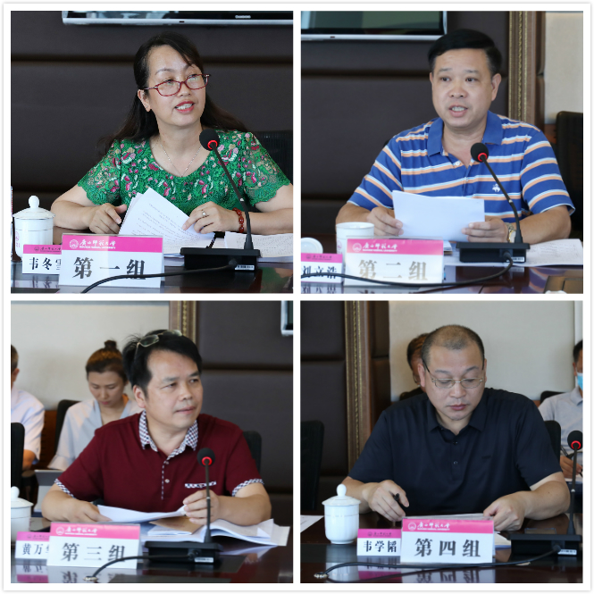 会议期间,与会人员分11个小组对《广西师范大学“十四五”事业发展总体规划(讨论稿)》、8个专项规划的文本以及学校“十四五”发展改革进行了研讨,各组积极讨论,热烈发言,提出了大量宝贵的意见建议,各组召集人向校党委作了讨论情况报告。