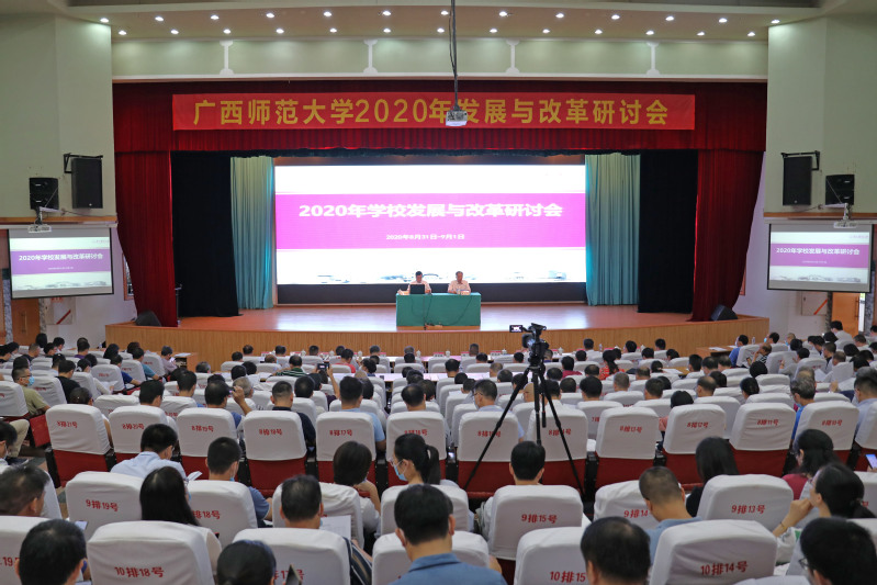 8月31日至9月1日,我校在育才校区田家炳教育书院报告厅召开主题为“谋划新蓝图 奋进十四五”的2020年发展与改革研讨会。校领导邓军、贺祖斌、旷永青、赵铁、黄文韬、苏桂发、孙杰远、莫坷、林春逸、蔡韧、李英利;校党委常委黄轩庄、林国庆、黄海波出席会议。各学院(部)、各单位副处级以上干部,民主党派、统战团体主要负责人,各学院(部)教师代表、各单位教职员工代表共380多人参加会议。会议邀请厦门大学教育研究院教授、院长、博士生导师别敦荣作了《关于“十四五”时期大学战略规划的若干思考》的精彩报告,校党委副书记旷永青、副校长苏桂发、孙杰远分别主持各项会议议程。
