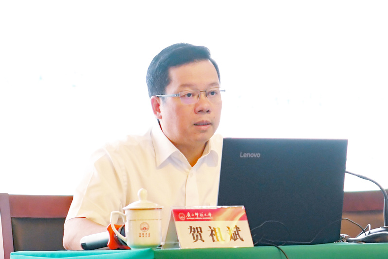 贺祖斌强调,“十四五”规划编制的原则是服务战略,对接需求;强化内涵,提升质量;要深化改革,激发活力;厚植特色,开放融合。贺祖斌分别从国家、广西到学校的3个层面介绍了“十四五”时期的高等教育发展背景,他对我校“十四五”规划编制工作的工作安排、规划体系进行了详细介绍,并对“十四五”发展规划中十大发展任务和举措进行了深入解读。