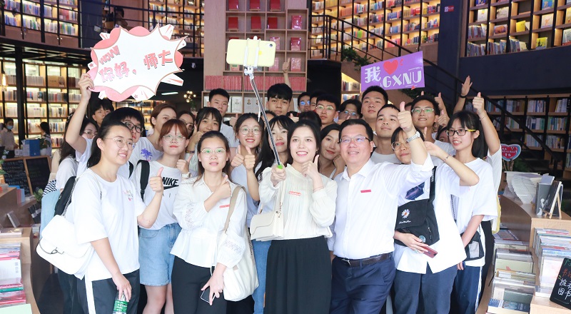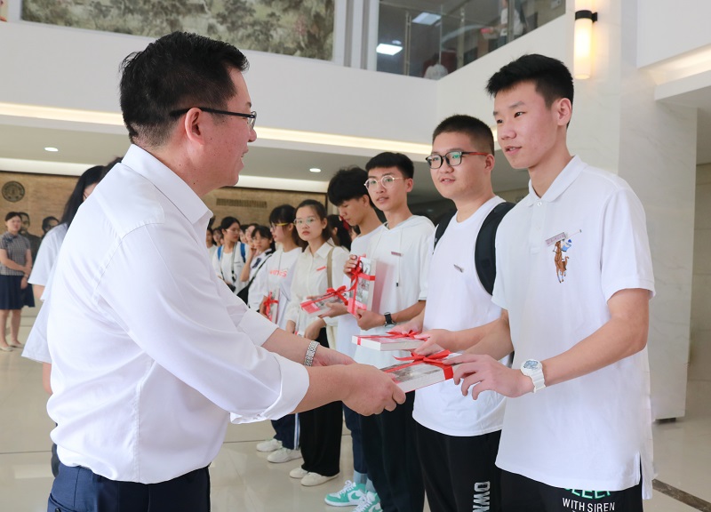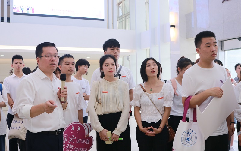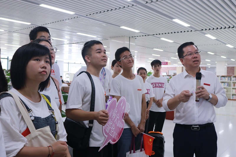 游览历时两个小时,在起文楼前,校长为新生代表赠送纪念书籍《习近平的七年知青岁月》和《习近平在宁德》,激励新一代师大学子勇敢追梦,在有限的大学生涯中创造无限的精彩,努力成为建设广西之柱石。