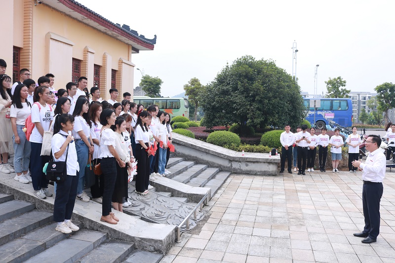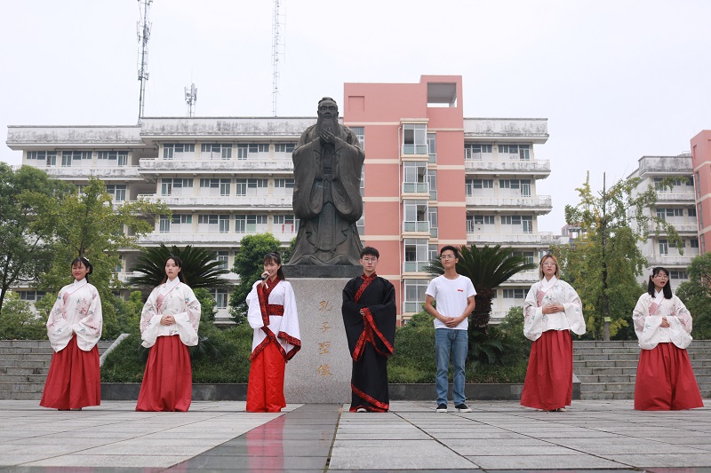 在学校东门前,贺祖斌校长通过“四次调整”、“六易其名”、“八次迁址”生动阐释了我校走过的光辉历程;图书馆内,师生一道参观了图书馆现代化的硬件设施,贺祖斌校长寄语新生“图书馆是一所大学的灵魂所在,希望大家在大学期间多读书、读好书”;孔子像前,贺祖斌校长和新生们体验拜师礼、吟诵,感受儒家经典《大学》,用朗朗读书声敲开了大学学习之门;起文楼大厅前,贺祖斌校长讲解了雁山校区整体布局规划,并对校训“尊师重道、敬业乐群”的新时代背景下的丰富内涵、历任校长等方面对校史、校情进行了解读。