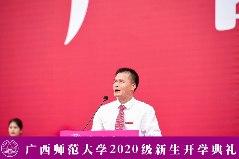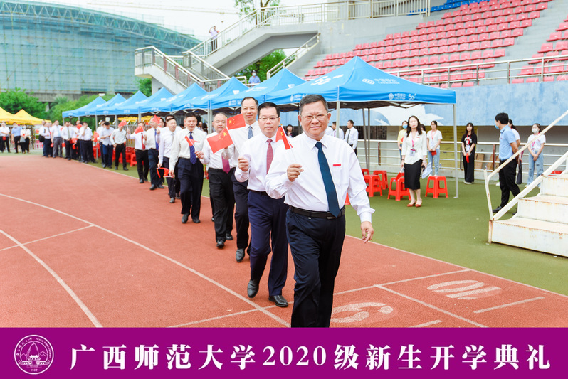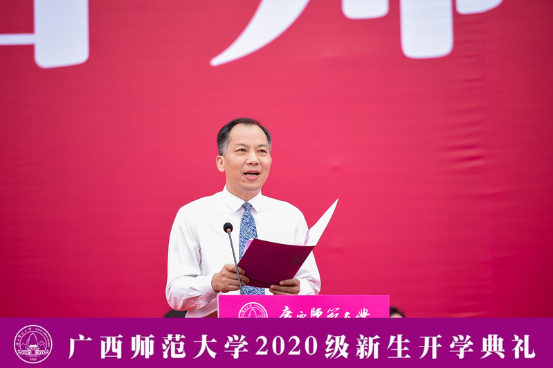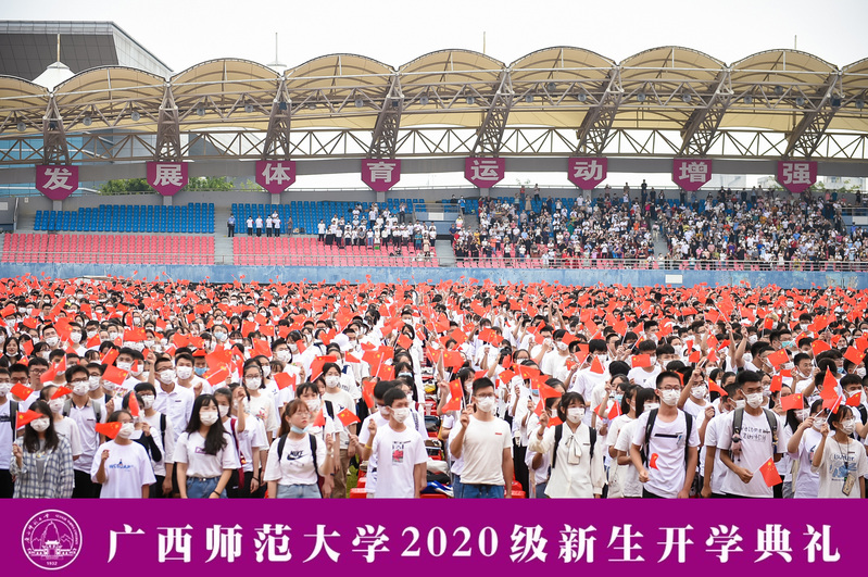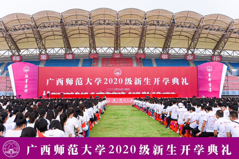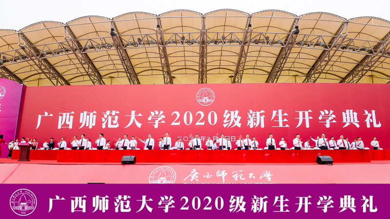 9月14日上午,我校在雁山校区举行2020级新生开学典礼。来自三校区的一万多名本硕博新生汇聚一堂,用梦想起航未来。典礼全程进行网络直播,逾4.1万新生亲友、校友等社会各界嘉宾在线观礼。校党委书记邓军出席典礼并为新生讲授开学第一课,校长贺祖斌出席典礼并作开学讲话,全体校领导,校党委常委出席开学典礼。典礼由校党委副书记旷永青主持。