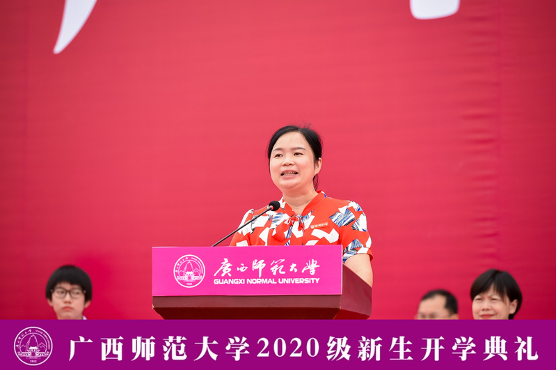 新生代表、文学院/新闻与传播学院汉语言文学专业的学生肖婧彤分享了成为师大人、选择汉语言文学专业的自豪与使命。她表示,未来的四年大学生活中,将用奋斗开创美好的未来,用责任诠释人生的价值,披荆斩棘,乘风破浪,在广西师范大学奋斗的日子里,奋发前行,实现人生价值。