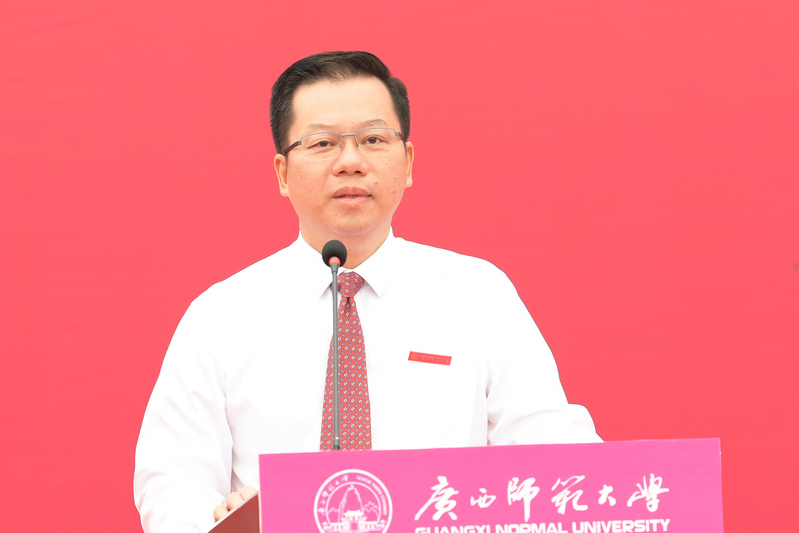 贺祖斌在开学讲话中代表全校师生对大家的到来表示热烈的欢迎和诚挚的问候,他与同学们分享了对学校深厚历史积淀与代代师大人精神传承的感悟。他指出,师大人在这块热土上继往开来,接续奋斗,追逐梦想。学校也正朝着建设国内高水平大学的奋斗目标重整行装,再出发。这里是“让优秀的人更优秀”的地方,在这里,有人物,有故事,有书香,有回忆,还有爱。贺祖斌表示,学校的发展凝聚着前辈们的辛勤付出,也离不开新生力量的加入。