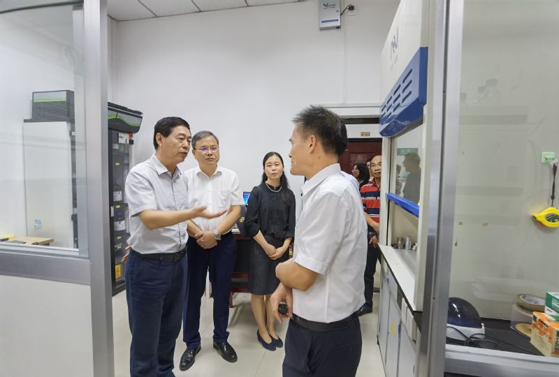 在参观调研我校国家重点实验室期间,钱副厅长听取了国家重点实验室负责人就实验室近年来在团队建设、科学研究、基础建设、国际合作以及服务地方经济等情况的汇报,并考察了国家重点实验室的大型仪器平台。钱副厅长表示,国家重点实验室在开展基础研究的同时要加强科技成果转化,服务地区经济发展,助力广西创新驱动发展。随后,钱副厅长还参观调研了我校的广西新能源船舶电池工程技术研究中心。