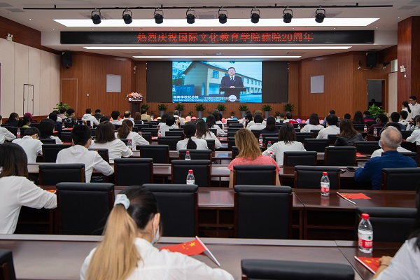 中外师生观看越南学校纪念馆创建10周年庆典视频