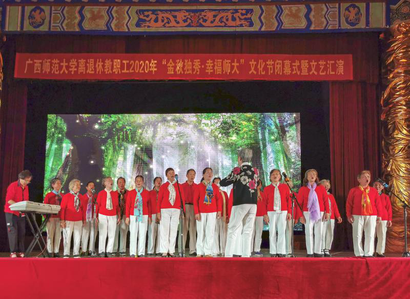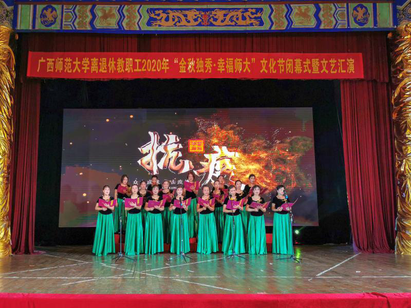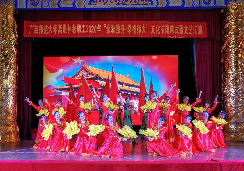 金秋文化放光彩,独秀精神耀九垓。九九重阳歌盛世,健康快乐满襟怀!10月26日下午,我校2020年“金秋独秀·幸福师大” 离退休教职工文化节闭幕式暨文艺汇演在王城校区国学堂隆重举行,校党委副书记旷永青出席,超700位老同志共同观看了文艺汇演。
