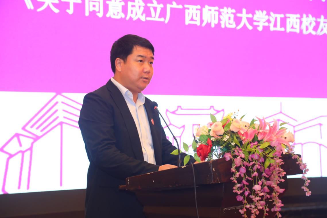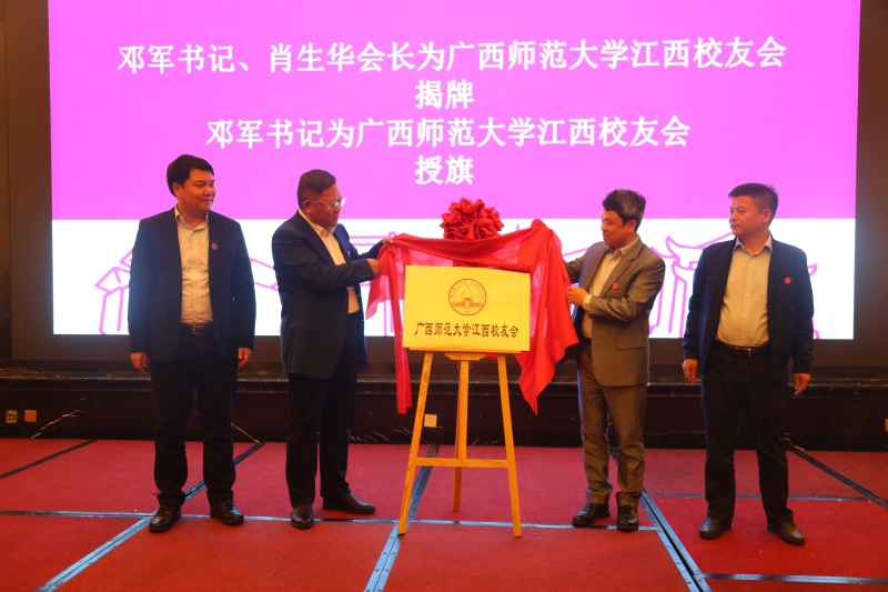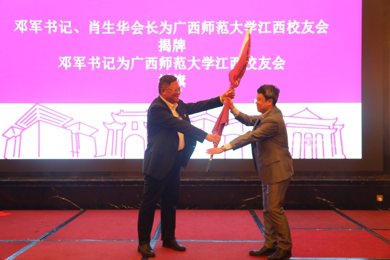 会上,李英利宣读了《关于同意成立广西师范大学江西校友会的批复》;江西校友会筹备组成员常建宝校友向大会汇报了江西校友会的筹备情况;大会审议通过了江西校友会组织机构成员名单;邓军、李英利为组织机构成员颁发了聘书,为江西校友会揭牌、授予会旗。