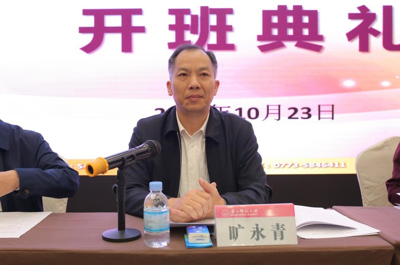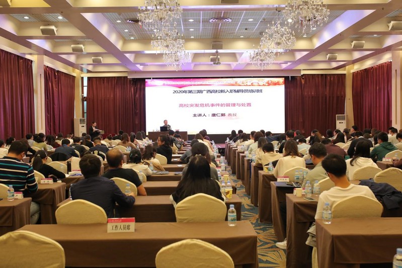 10月22-27日,由自治区教育工委、教育厅主办,教育部高校思想政治工作队伍培训研修中心(广西师范大学)承办的2020年第三期广西高校新入职辅导员培训班顺利举行,我校53名新入职辅导员全员参加了此次培训。校党委副书记旷永青教授出席开班仪式并讲话。
