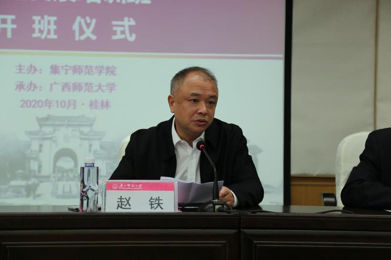 赵铁在开班仪式上致辞,对来自“祖国正北方,亮丽内蒙古”的集宁师范学院的新老朋友表示诚挚欢迎。赵铁对学校的办学历史、学科优势、党建工作、文化建设等方面做了介绍。他指出,学校党委团结带领全校师生坚持与党和国家大局大势同向同行,全面贯彻落实党的教育方针,坚守高质量发展战略定位,全面落实立德树人根本任务,全面深化综合改革,全面推进“双一流”建设,夯实学校改革发展稳定制度根基,沉着应对各种风险挑战,以观大势、把大局、谋大事的智慧与魄力把方向、管大局、作决策、促落实,学校党的建设和事业发展形势发生了全局性的转变,为全面建成国内高水平大学建设打下了更加坚实的基础。