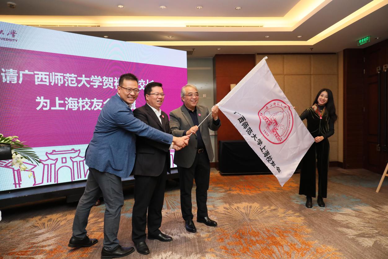 会上,李英利宣读了《关于同意成立广西师范大学上海校友会的批复》;审议通过了上海校友会章程和组织机构成员名单;贺祖斌、李英利为组织机构成员颁发了聘书,为上海校友会揭牌、授予会旗。