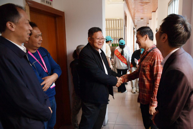 校领导与体检的老同志亲切交谈