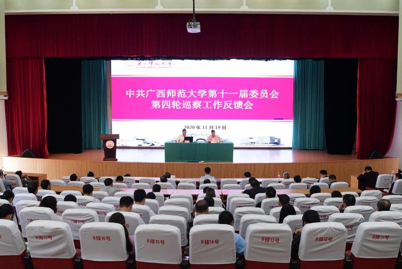 11月19日下午,学校第十一届党委第四轮巡察工作反馈会在育才校区田家炳教育书院报告厅召开。巡察工作领导小组组长、校党委书记邓军出席会议并讲话,强调全校各级党组织、全体党员领导干部要深入学习贯彻习近平总书记关于巡视巡察工作的重要论述,融会贯通领悟党中央和自治区党委关于巡视巡察的决策部署,以强烈的政治担当和扎实的工作作风做好巡视、巡察整改,坚定不移全面从严治党,全力推动学校各项工作提质增效,迈向新发展阶段。