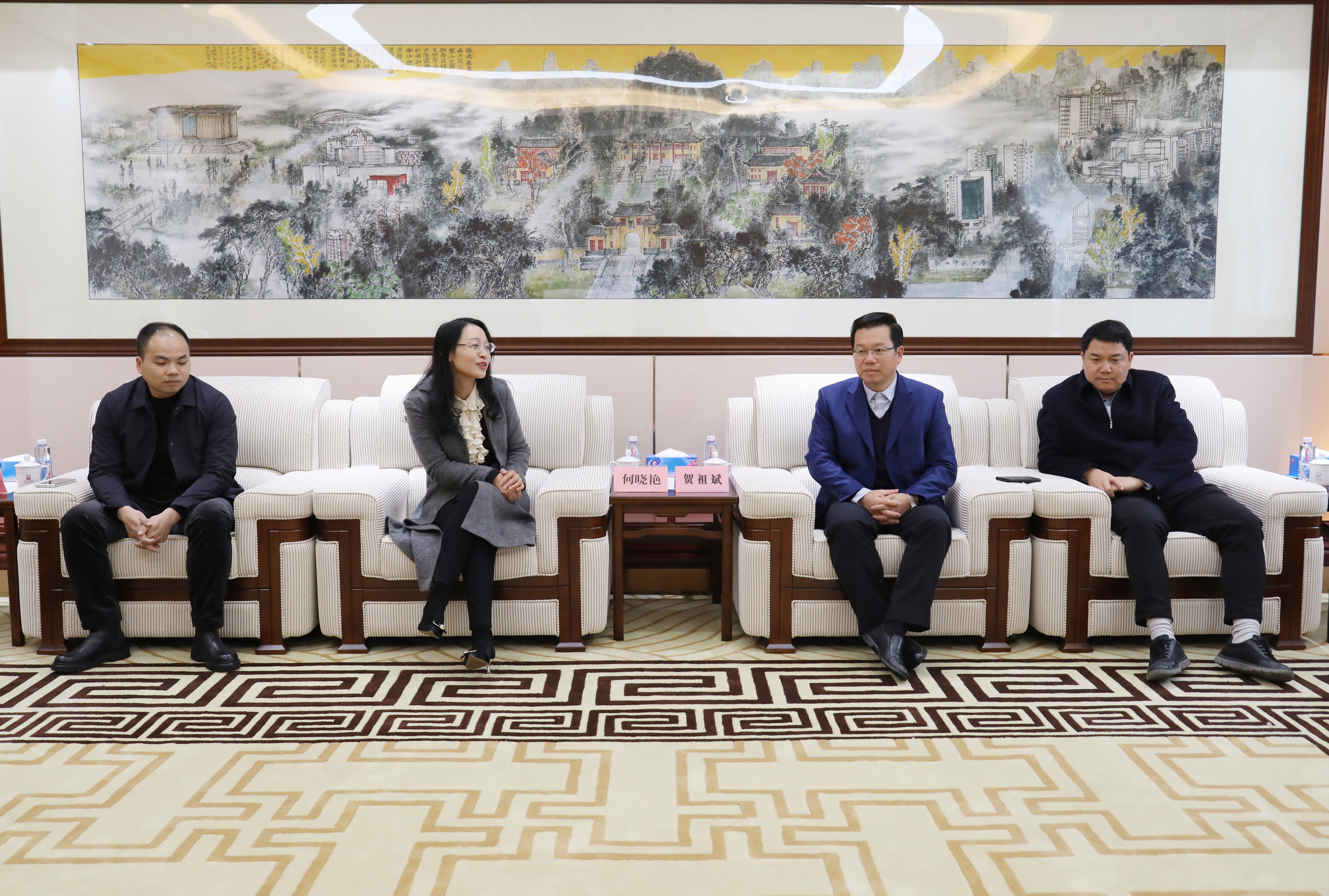 11月25日下午,交通银行桂林分行党委书记、行长何晓艳一行来访我校,校长贺祖斌、校总会计师李英利会见来宾并举行座谈。