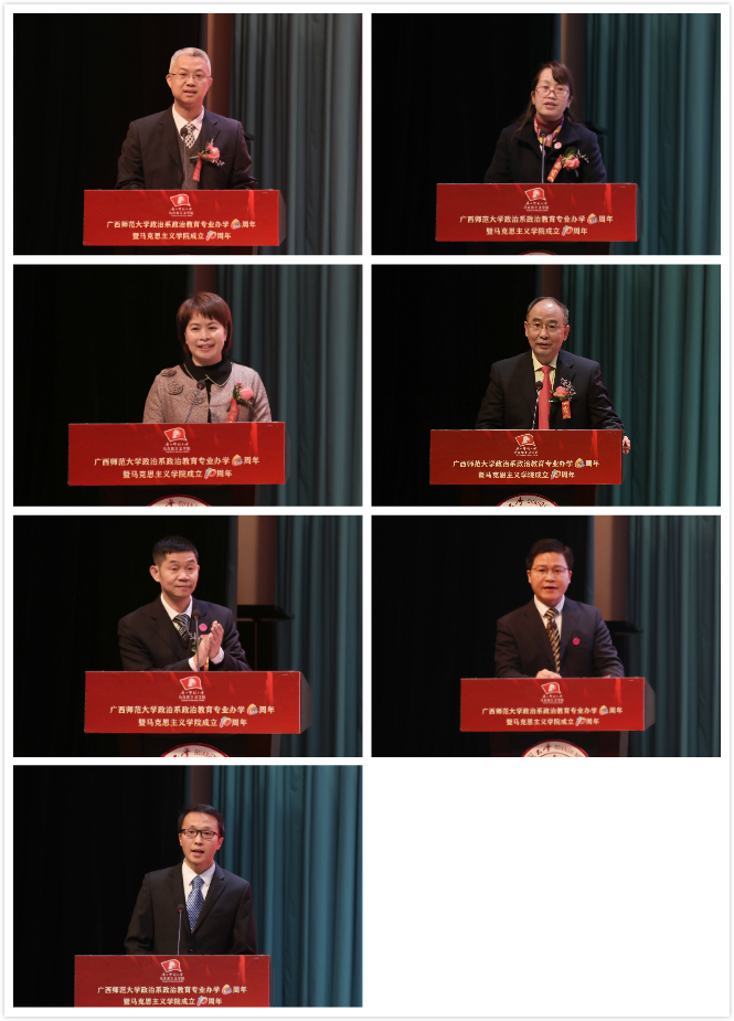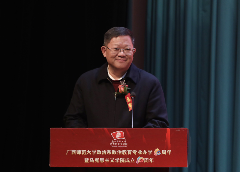 邓军最后说,有习近平新时代中国特色社会主义思想为我们指引前进的方向,由党中央、自治区党委和学校党委的坚强领导,有全体师生员工的团结奋斗,有广大校友院友的鼎力支持,学校一定会把马克思主义学院建设成为国内一流、有重要国际影响力,能够起到示范带动作用的马克思主义学院,推动马克思主义学院高质量发展走在前列。广西师范大学建设国内一流国际知名教师教育特色鲜明的国内高水平大学的目标一定能够实现。我校马克思主义学院的明天一定能够更加壮丽,更加辉煌。