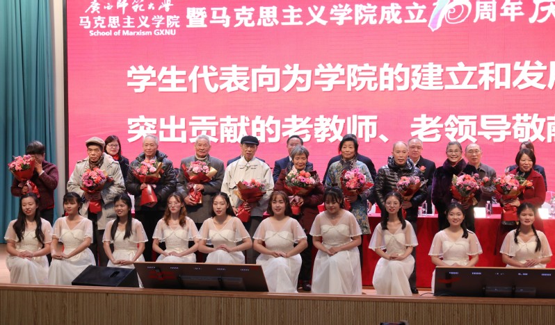 会上,学生代表为学院的建立和发展作出贡献的老教师、老领导敬献了鲜花。