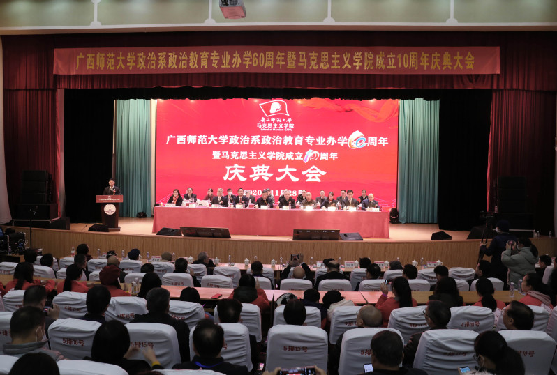 11月28日,广西师范大学政治系政治教育专业办学60周年暨马克思主义学院成立10周年庆典大会在育才校区田家炳教育书院报告厅举行。校党委书记邓军出席大会并讲话。校长贺祖斌在庆典大会期间参观了学院办学成就展,并给予高度肯定。