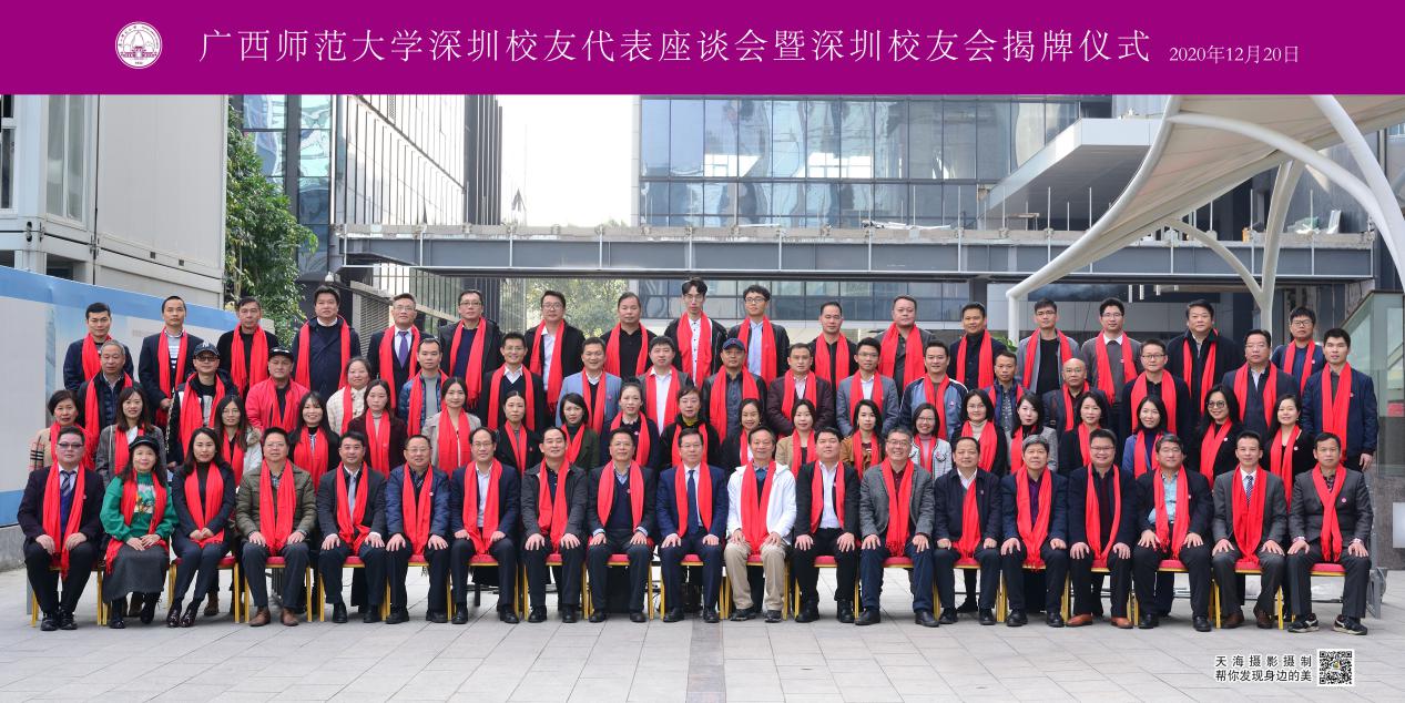 12月20日,广西师范大学深圳校友代表座谈会暨深圳校友会揭牌仪式在深圳市福田区举行。校长、校友会会长贺祖斌,校党委常委、总会计师、校友会常务副会长李英利出席会议,校长办公室、校友工作办公室、教育发展基金会、基建处、经济管理学院、电子工程学院等单位负责人以及兄弟院校校友会代表与我校深圳校友代表、各地校友代表60余人参加了会议,共同见证深圳校友会揭牌。
