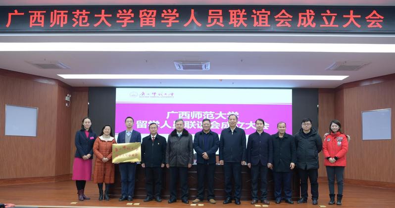 2020年12月24日上午,广西师范大学留学人员联谊会成立大会在育才校区国际教育交流中心2号楼201报告厅举行,校党委书记邓军,校党委副书记旷永青,校党委常委、副校长苏桂发,校党委常委、统战部部长黄海波,党办/督查办,组织部,宣传部,统战部,教师工作部负责人,二级单位党委(总支)书记,留学人员联谊会会员等近100人出席了成立大会。成立大会由旷永青副书记主持。
