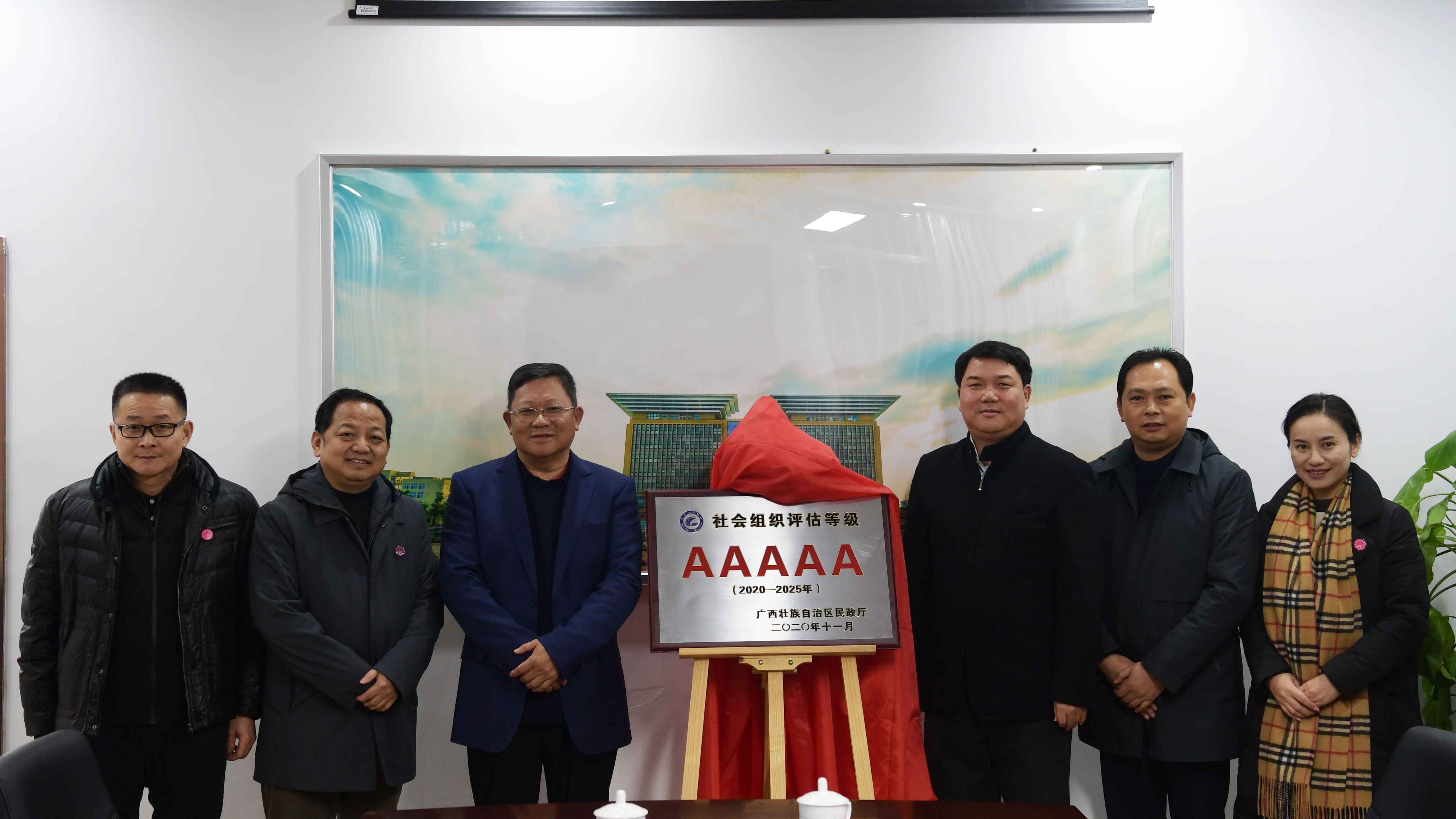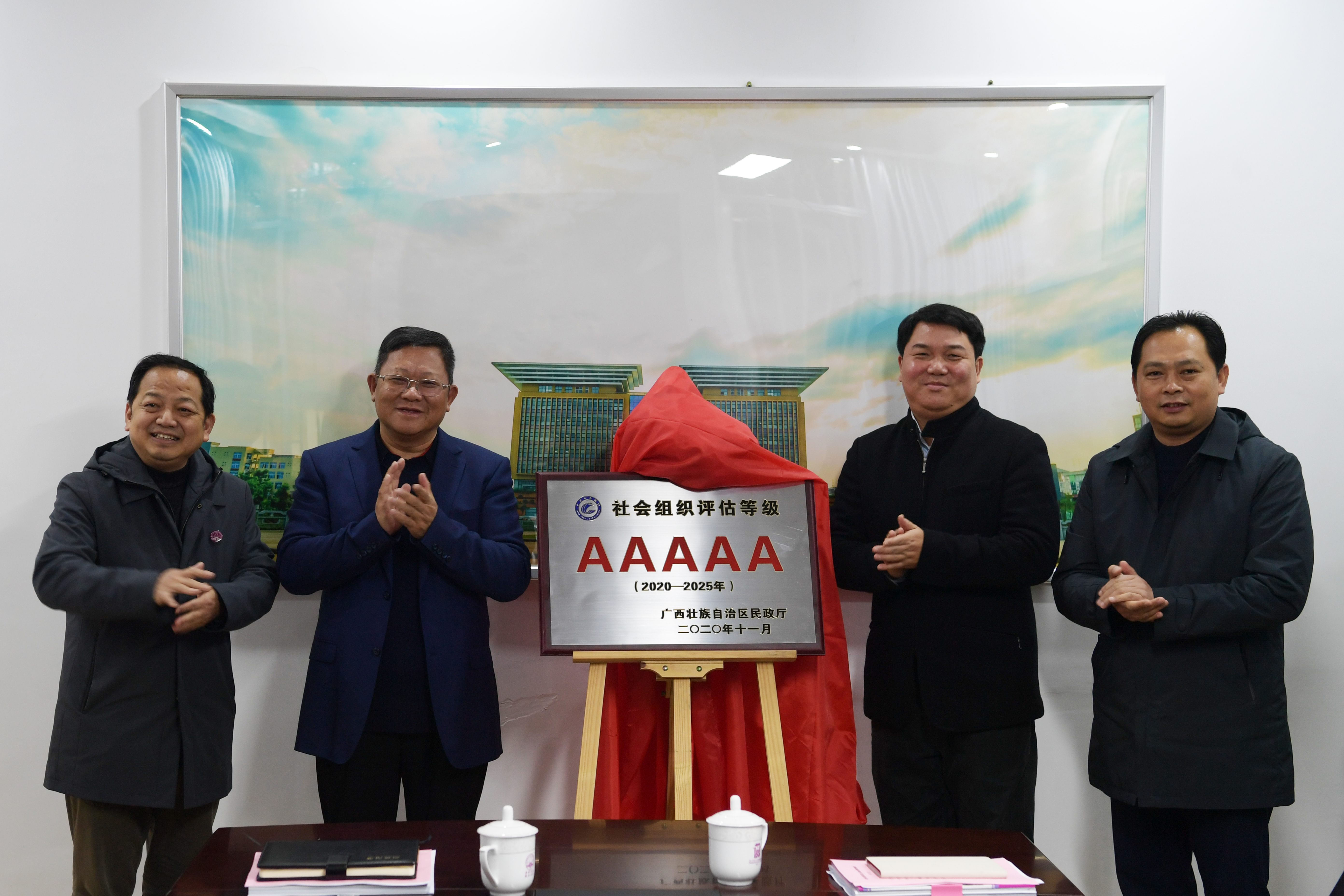 邓军(左二)、李英利(右二)共同为教育发展基金会“5A社会组织”揭牌