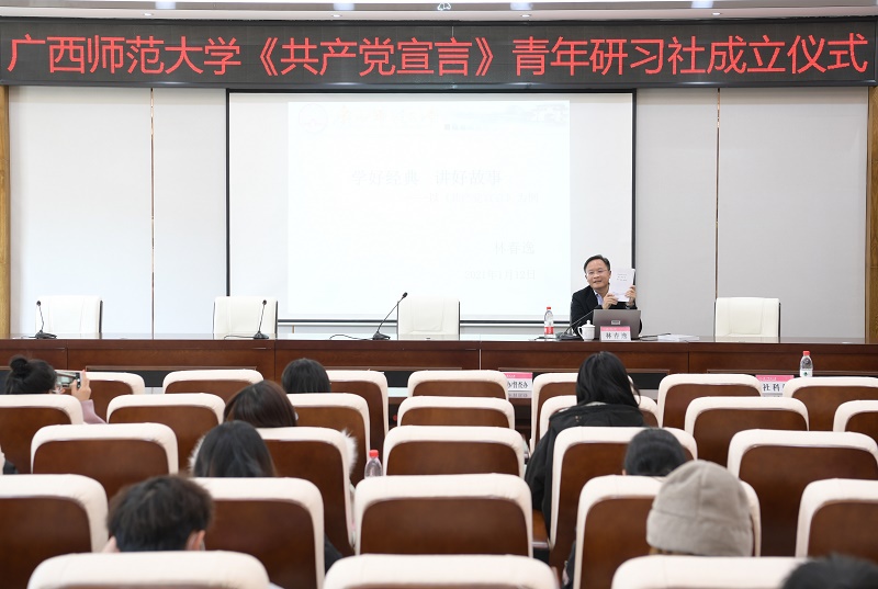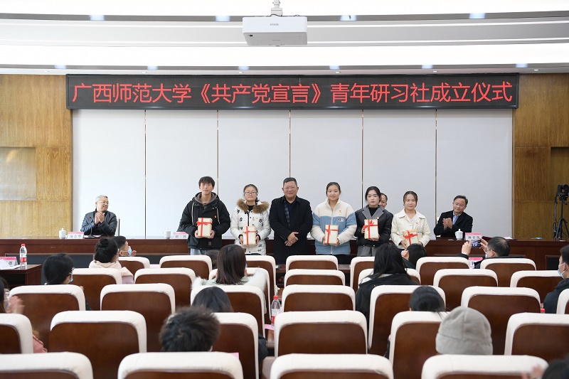 据悉,我校《共产党宣言》青年研习社是在校党委的领导下,在党委宣传部、学生工作部(处)、校团委、研究生工作部、广西人文社会社会科学发展研究中心、马克思主义学院的共同指导下,由我校青年马克思主义者培养工程学员作为主体的校级学生社团。青年研习社将积极组织广大团员青年深化经典著作研究阐释宣传普及,引导团员青年从中汲取理论力量,坚定理想信念,强化使命担当,将学习、实践、创新紧密结合,砥砺前行,开拓创新,争做新时代马克思主义的践行者和奋斗者。