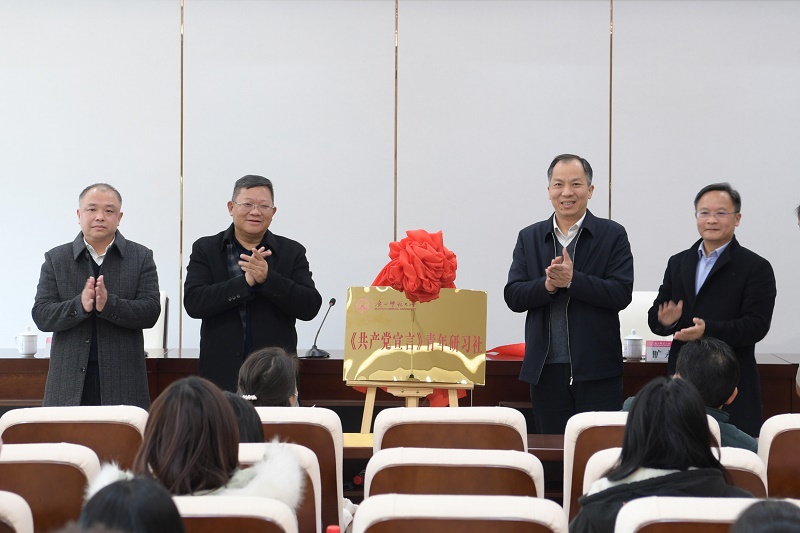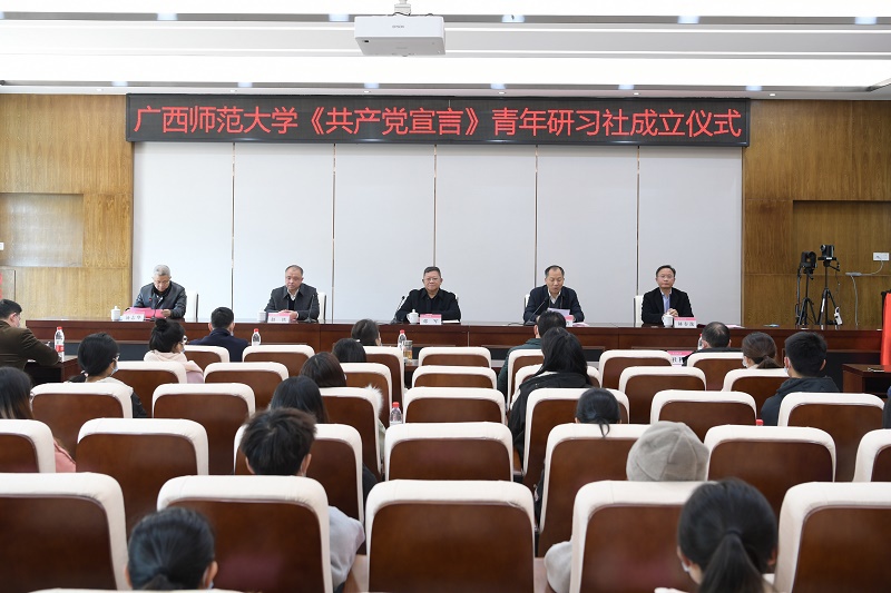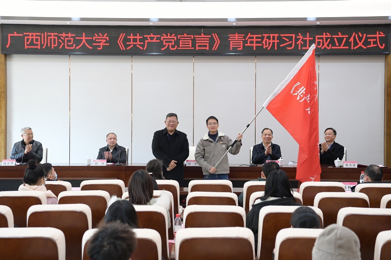 1月12日下午,我校《共产党宣言》青年研习社揭牌仪式在雁山校区举行。校党委书记邓军,校党委副书记旷永青,校党委副书记赵铁,校党委常委、副校长林春逸共同为青年研习社揭牌。