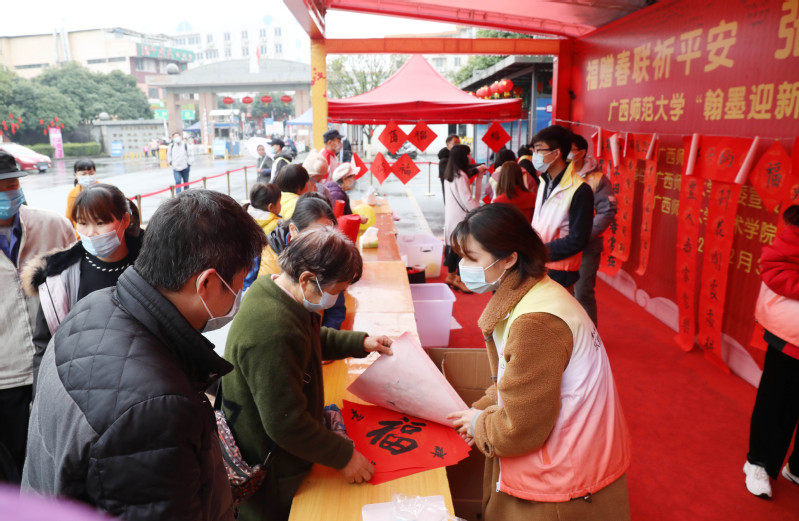 淅淅沥沥的春雨,仍然没有挡住师生员工及家属领取春联的热情,现场排队人员络绎不绝,春意融融,年味十足。现场寄送的近400副春联、300个福字和300个灯笼,不仅展示了我校书法家和书法爱好者的艺术底蕴与书法魅力,让大家在幽幽墨香中感受浓浓的年味,也向全校师生员工送去新春祝福,回味大家在不平凡的一年中的坚守和努力,在关怀和温暖中感受新年期许中的奋进力量。