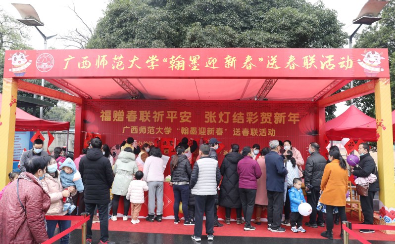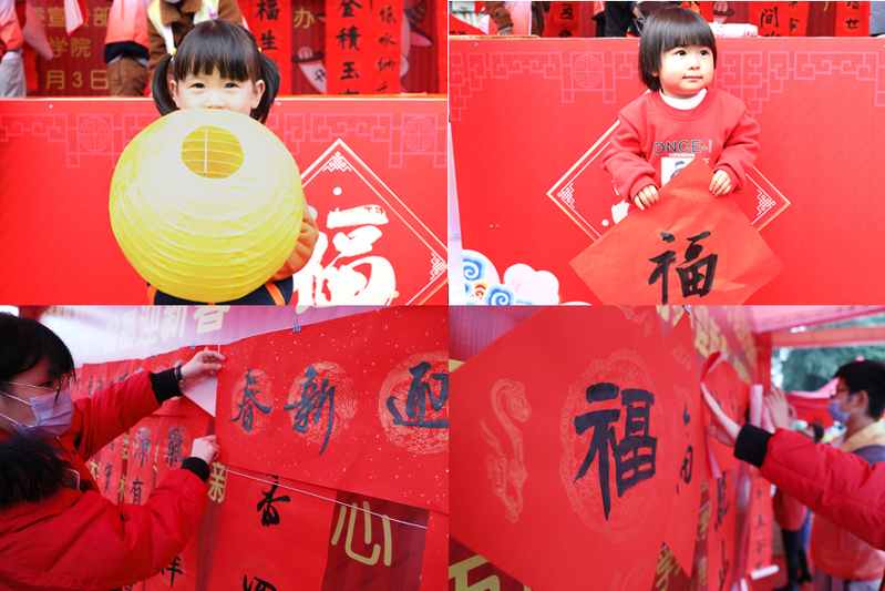 妙笔生花送福瑞,翰墨飘香迎新春。2月3日上午,立春之际,育才校区南门呈现一派热闹景象,火红的舞台、喜庆的音乐、满是年味的“福”字、春联和灯笼共同营造出新春喜气洋洋的氛围。