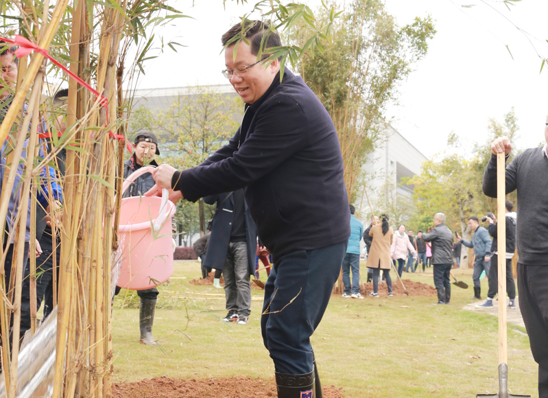 在雁山校区雁石林,在校后勤保障处/后勤服务集团校园绿化专业人员的指导下,机关党员同志们分成几个小组,各组成员分工协作,配合默契。有人手扶竹苗,有人挥锹填土,有人提桶浇水,现场一派繁忙的劳动景象。经过一个多小时的奋战,种下了一批郁郁葱葱的竹子,一株株翠竹高耸挺拔,为师大的春天增添了一片生机。
