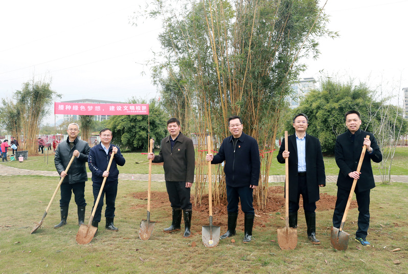 在第43个植树节到来之际,3月12日下午,校领导贺祖斌、莫坷、林春逸,校党委常委林国庆、黄海波、汤志华带领机关各党支部书记、各职能部门主要负责人开展“播种绿色梦想,建设文明校园”2021年机关党员植树活动。