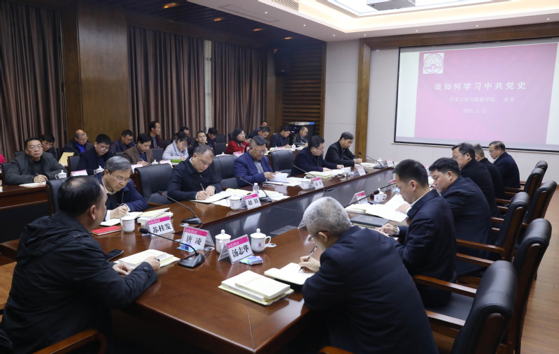 会议特邀历史文化与旅游学院唐凌教授为学习中心组作专题辅导,领学习近平总书记在党史学习教育动员大会上的重要讲话精神。