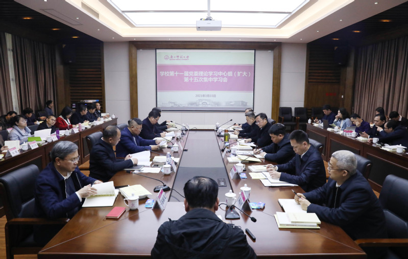 3月15日上午,学校第十一届党委理论学习中心组(扩大)第十五次集中学习会议在雁山校区起文楼第四会议室召开。会议深入学习贯彻全国、全区党史学习教育动员大会精神,2021年全国、全区两会以及中央经济工作会议精神,不断推动全校上下学习宣传贯彻习近平新时代中国特色社会主义思想往深里走、往实里走、往心里走,为学校深化综合改革,加快推进“立德树人、师范为本、质量为先、创新为要”的高水平、示范性师范大学建设,办好人民满意的教育提供强大的理论基础、思想保证和精神动力。
