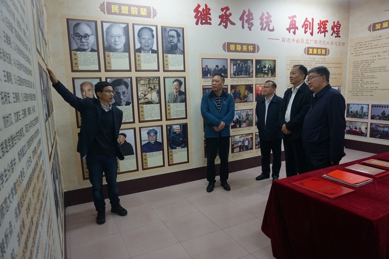4月12日上午,政协内蒙古自治区巴彦淖尔市副主席、民盟巴彦淖尔市委主委徐康宁一行到我校考察,桂林市人大副主任、民盟桂林市委主任谭建国,民盟广西区委宣传部长倪淑萍等领导陪同来访。我校党委副书记旷永青,校党委常委、统战部部长黄海波、我校民盟总支负责人与来访嘉宾进行了友好交流,并陪同嘉宾参观了我校民盟陈列室、“盟员之家”和越南学校纪念馆。