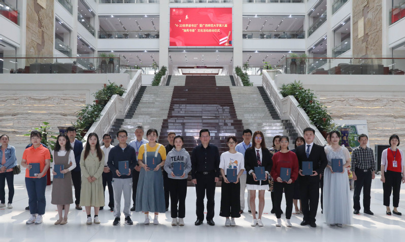 为进一步营造书香校园氛围,全方位提高文化育人实效,4月23日,在第26个“世界读书日”到来之际,广西师范大学第8届“独秀书香”文化活动在雁山校区图书馆隆重开幕。校长贺祖斌出席启动仪式并致辞,校党委宣传部、校学工(部)处、校团委、各学院(部)相关负责人、图书馆全体职工、各学院师生代表参加了启动仪式。