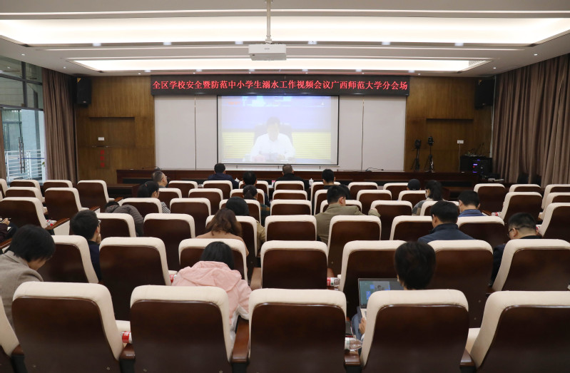 4月28日上午,自治区人民政府组织召开全区学校安全暨防范中小学溺水工作视频会议,我校在雁山校区起文楼第五会议室设立分会场,校党委书记邓军、总会计师李英利参加了会议。
