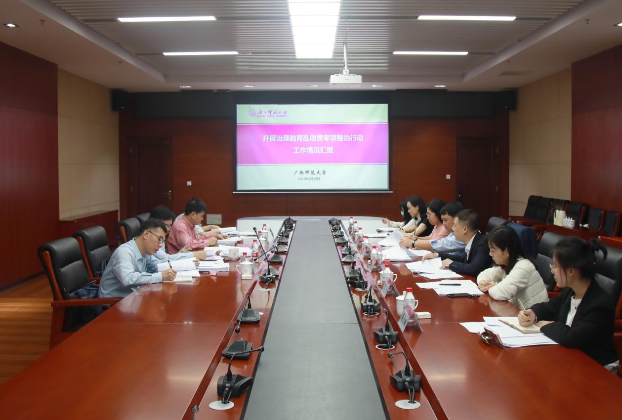 5月19日下午,由广西财经学院总会计师韦增忠带队的自治区治理教育乱收费厅际联席会议办公室督查调研组一行四人到我校开展教育收费治理专项督查调研,督查调研会议在雁山校区图书馆第二会议室召开。