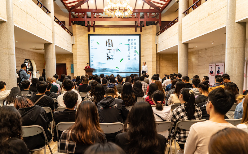 5月22日上午,由广西壮族自治区教育厅、广西师范大学主办,广西教育学会书法教育专业委员会、广西师范大学美术学院承办,桂林画院协办的“园丁杯”广西教育系统第五届书法篆刻作品展在桂林美术馆开幕。