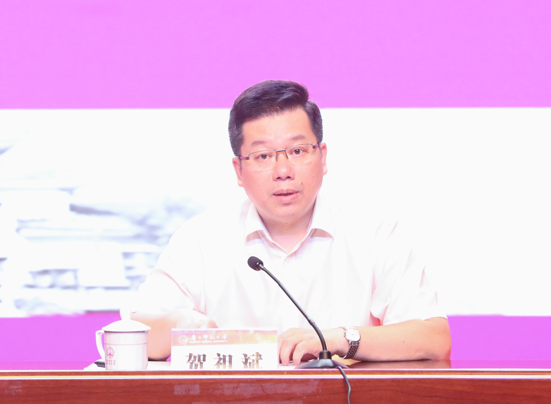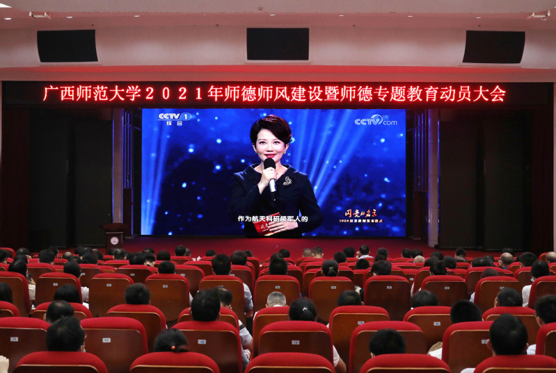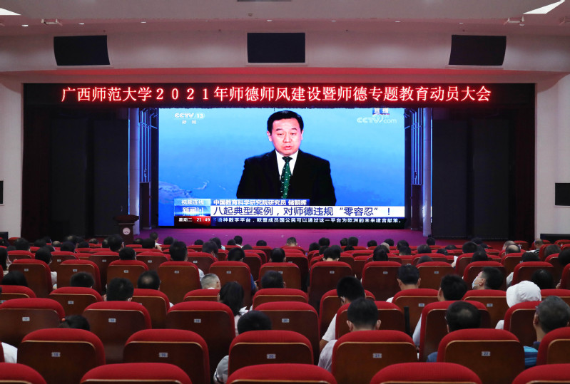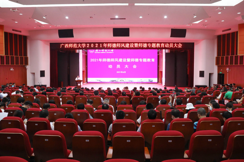 6月3日下午,学校在雁山校区音乐楼三楼综合厅召开2021年师德师风建设暨师德专题教育动员大会。会议深入学习贯彻习近平总书记关于师德师风和教师队伍建设的系列重要讲话精神,贯彻落实上级关于加强教师队伍师德师风建设的系列文件精神和部署要求,总结工作,分析形势,全面启动师德专题教育,认真部署当前和今后一段时期学校教师思想政治和师德师风建设的重点任务。校党委书记邓军出席会议并讲话,校党委副书记、校长贺祖斌对学校师德专题教育工作进行了部署。会议由校党委副书记赵铁主持。