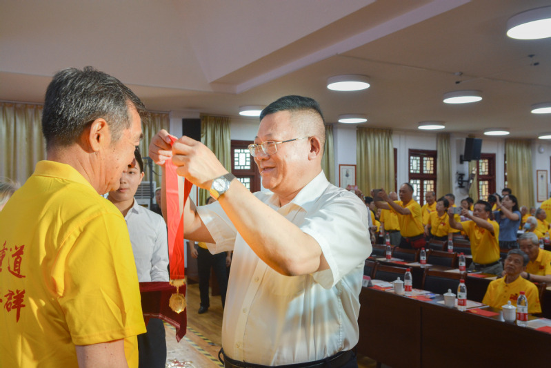 仪式在庄严的国歌声中拉开帷幕,邓军书记为到场的80名老党员一一颁发并佩戴纪念章,向他们表示祝贺并致以崇高的敬意。