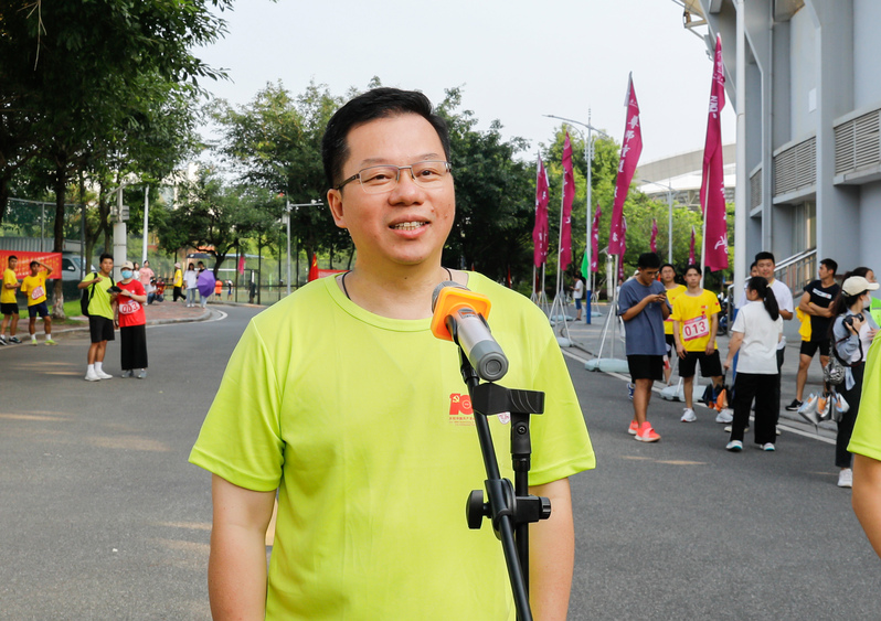 贺祖斌发布起跑令,带领师生开启这场“红色跑步之旅”。他们从田径场出发,途径“中国共产党成立100周年庆祝活动标识”地标、生物多样性博物馆、厚藩楼、东莼大道、孔子广场、起文楼等经典打卡地点和主要建筑,成为校园中一条引人注目的“红色”跑道。本次健身跑接力赛师生同参与,共有100支队伍,100位教师,1800余名参赛运动员共同参加,赛道全程约17公里。