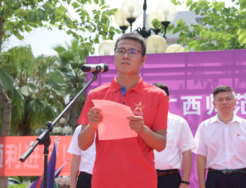 随后,学生代表封治民向即将奔赴各地开展社会实践的青年朋友们发出倡议,希望青年学子在社会实践中争做志愿服务精神的传承人、科教兴国的引领者、乡村振兴的实践者。